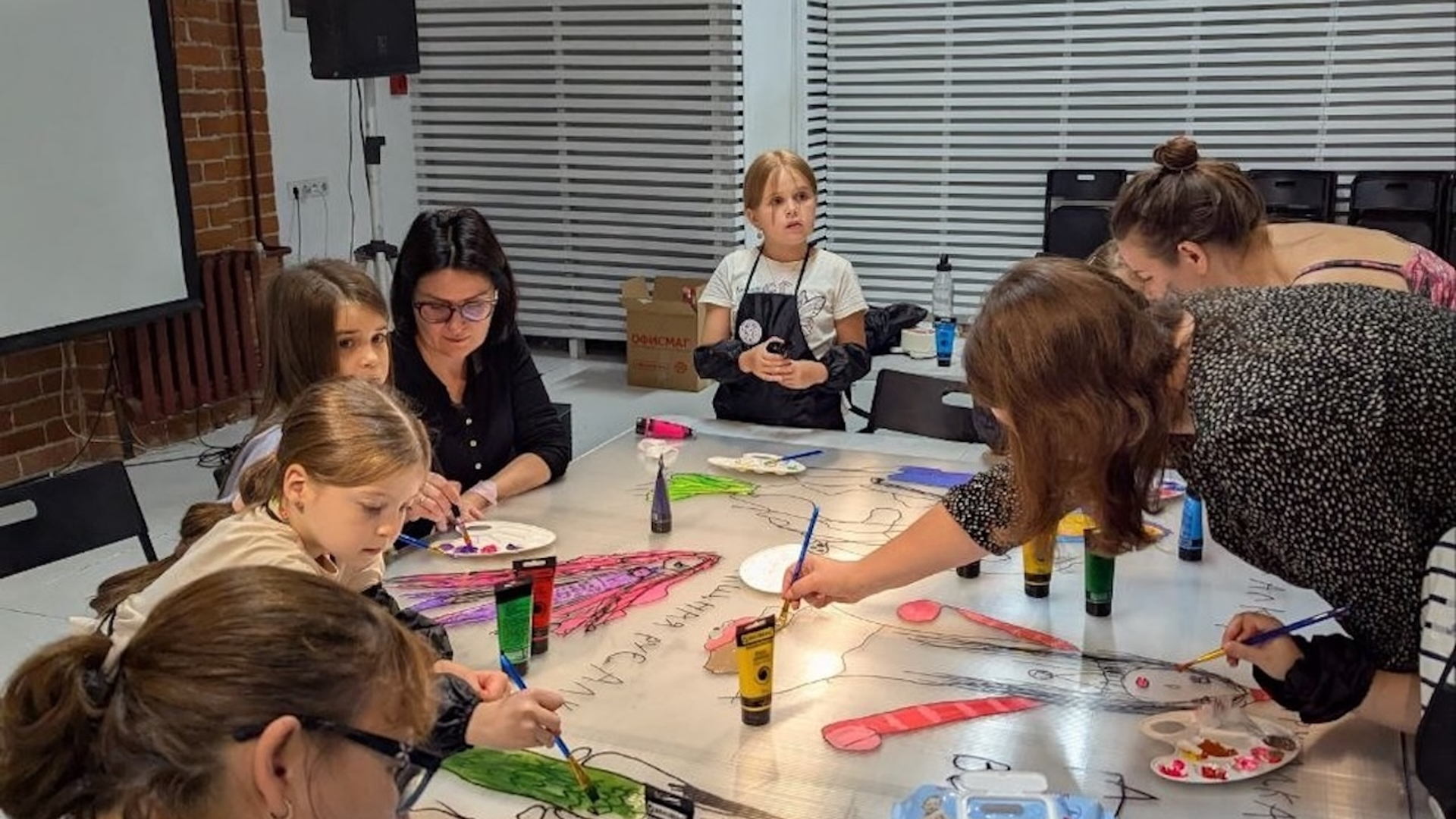 Раскрашиваем огромные раскраски при помощи акриловых красок и кистей.